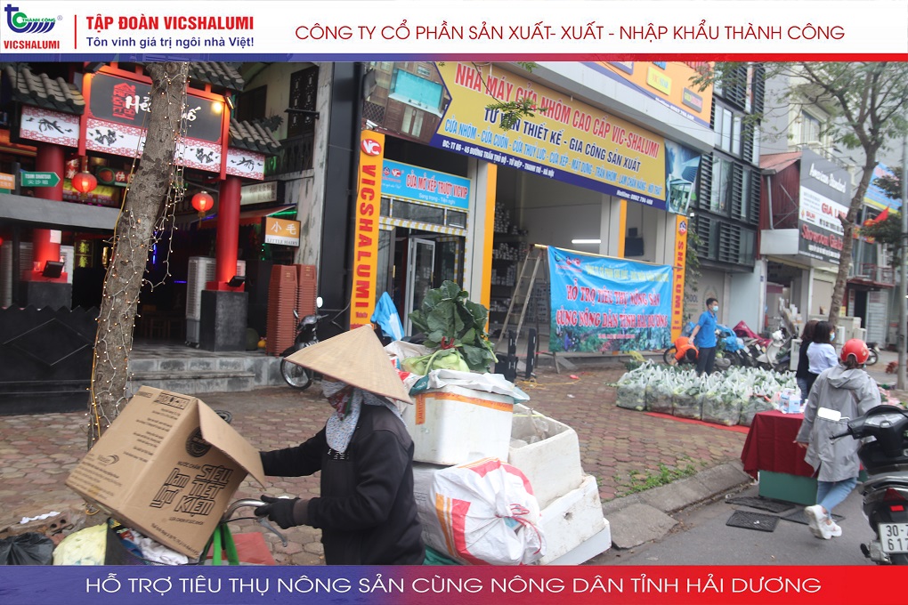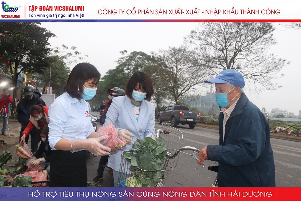 Trước tình hình này, Tập đoàn VICSHALUMI liên tục thu mua nông sản phát miễn phí ủng hộ nông dân Tỉnh Hải Dương. Đây là lần thứ 3 Tập đoàn VICSHALUMI phát miễn phí nông sản như xu hào, bắp cải, củ cải, cà rốt, cà chua, ổi. Điểm phát miễn phí nông sản lần 3 được phát tại. Nhà máy cửa nhôm VIC - SHALUMI. Địa chỉ: TT06-45 Đường Trần Thủ Độ, Thanh Trì, Hà Nội