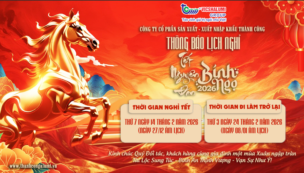 Tập Đoàn Vicshalumi Thông Báo Lịch Nghỉ Tết Nguyên Đán 2026.